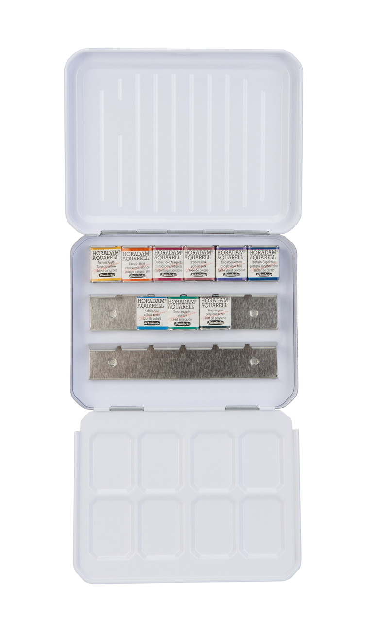 О серии: профессиональные акварельные краски «Horadam» известны миру благодаря своему качеству. Полная палитра серии включает в себя 140 цветовых оттенков + специальные лимитированные версии. Акварель серии «Horadam» выпускается в маленьких кюветах и тубах объёмом 5 миллилитров. Все цвета представлены поштучно и в наборах различной комплектации.